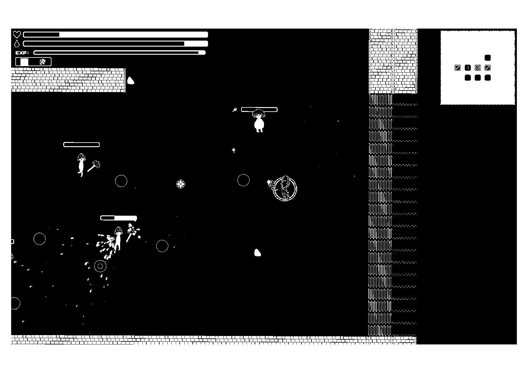 You play as a flower-man fighting against mushroom people in randomly generated caves.